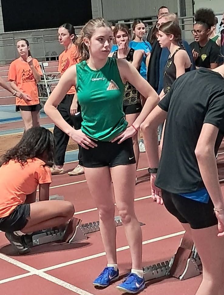 Louise en pleine progression, bat ses RP de 6 pts au triathlon, de 6 centièmes au sprint, de 26 centièmes sur les haies…et fera encore mieux le 20 décembre à Reims avec 8″22…encore 26 centièmes retranchés.