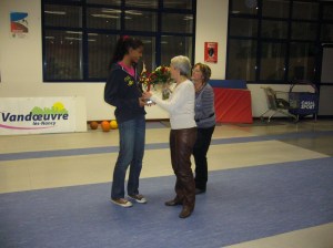 elle s’est vue remettre le super trophée des mains de Nelly Deville, adjointe chargée des sports. A noter la présence de ses deux entraîneurs : Louis Félix Labridy et Michel Guntz.