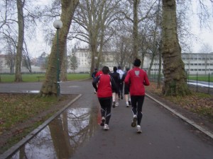 Ca y est je fais jonction le long du stade de la pépinière, un peu avant la remontée le long de la VEB. « Allez Romain !, il a l’air bien.