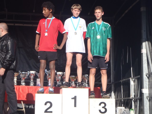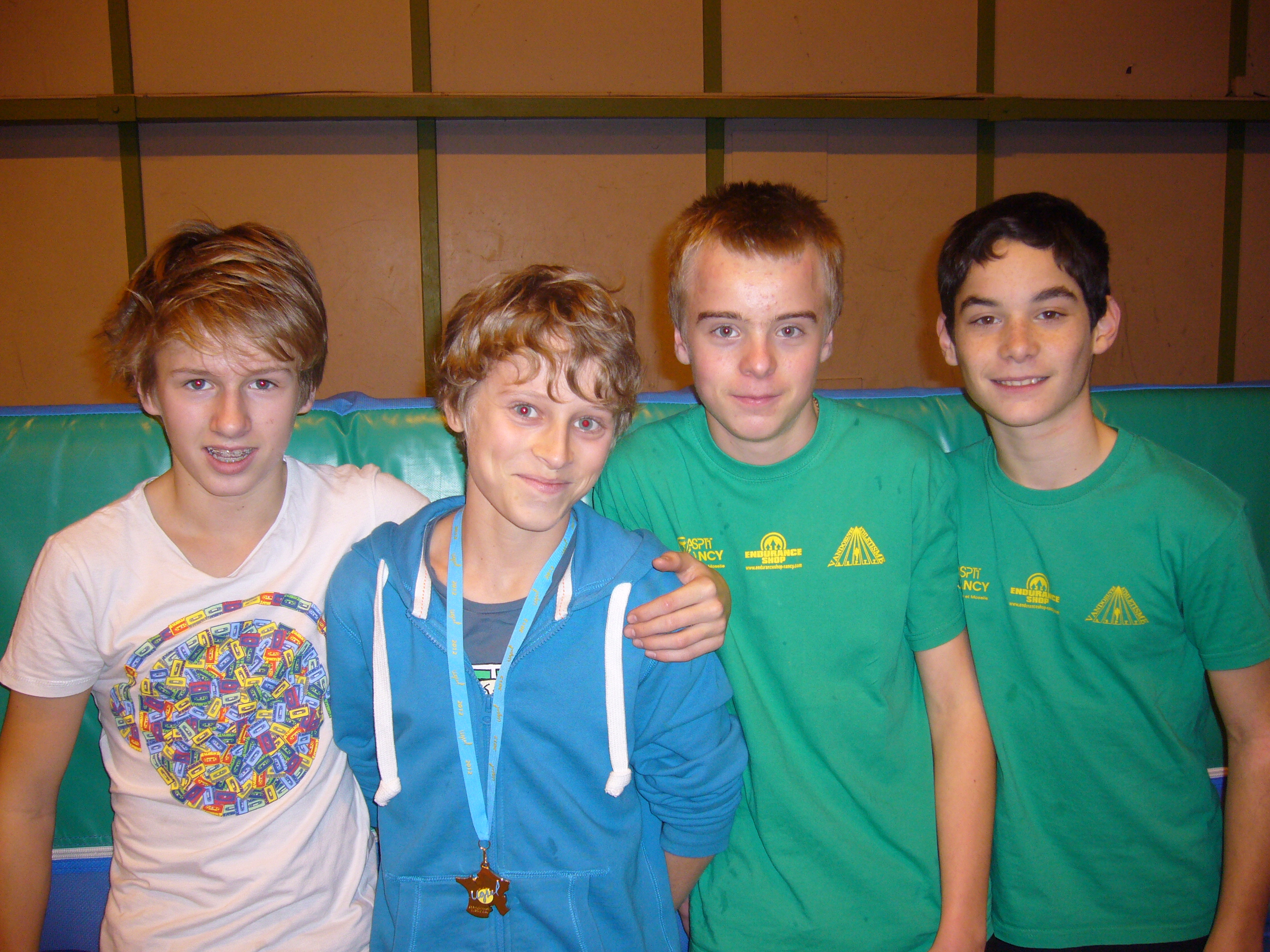 Ce mercredi , Romain ZAGALA est venu aux Aiguillettes montrer à ses copains Hugo, Nicolas et Léo la médaille d’Or qu’il a brillamment gagné samedi dernier en Bretagne .