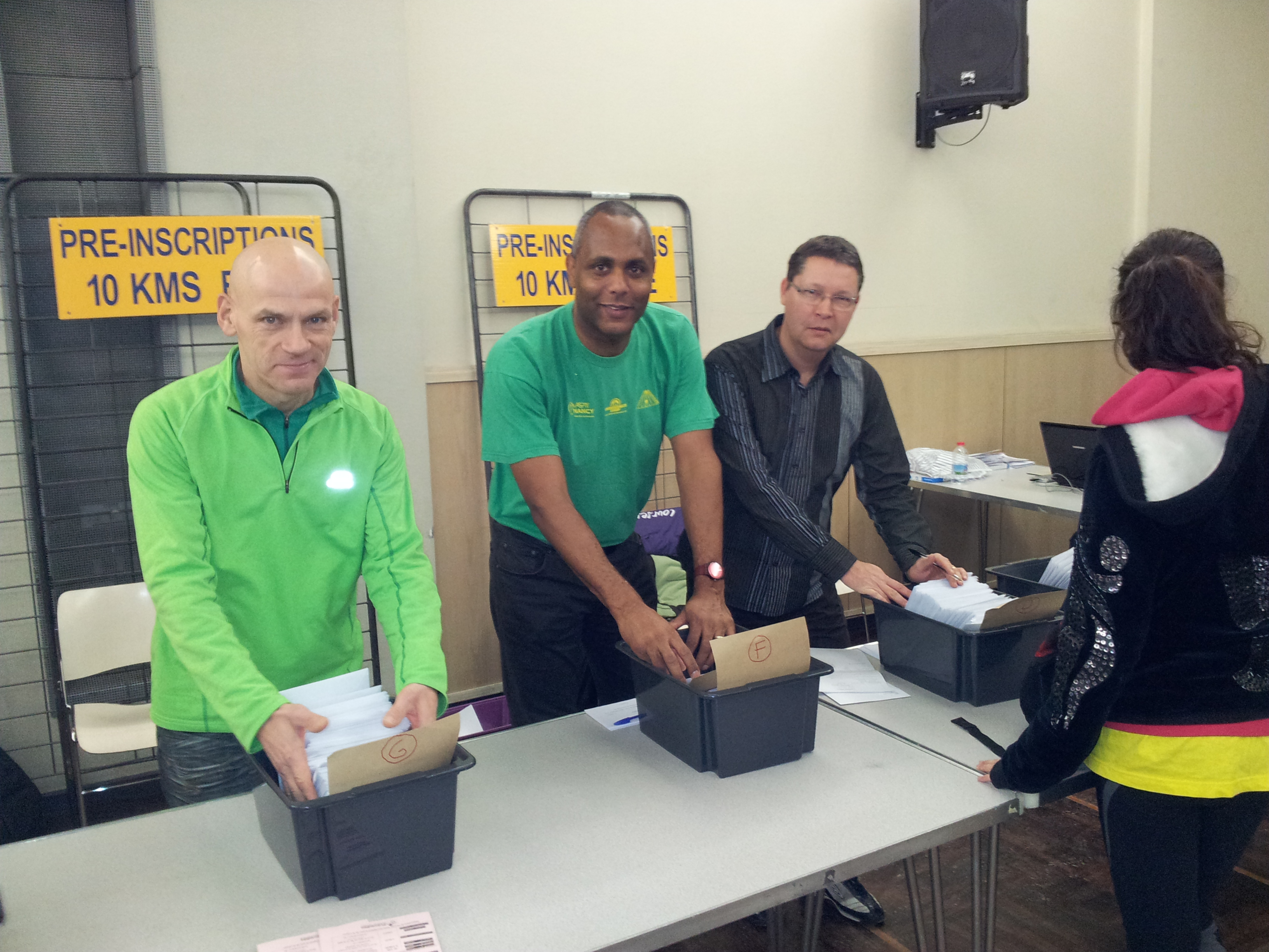 Nous étions plusieurs bénévoles du club notamment au stand de retrait des dossards le samedi et le dimanche. Bravo à tous! Une pensée pour Colette clouée au lit par une bonne grippe.