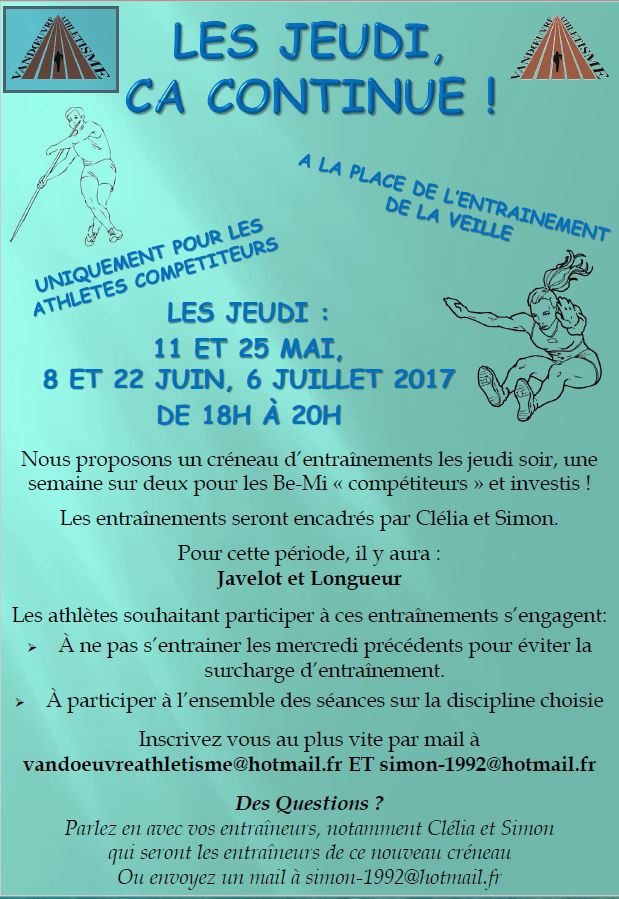 N’hésitez pas à nous contacter : athletismevandoeuvre@gmail.com