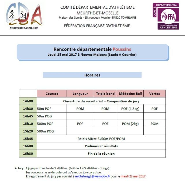Veuillez trouver ci-dessous les horaires de la compétition pour les PO le samedi 25 mai :