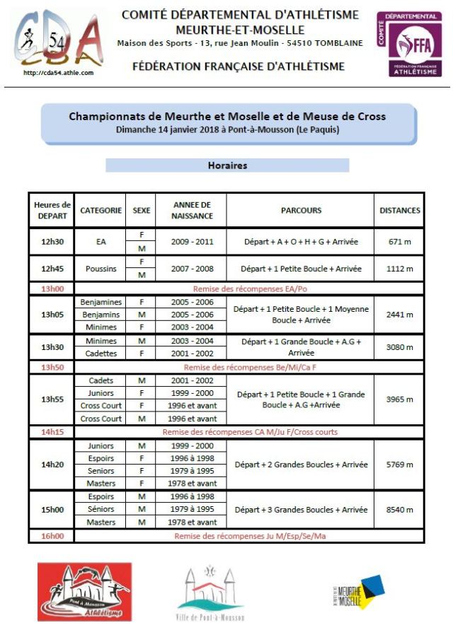 - Le Cross est ouvert exclusivement aux licenciés FFA « Compétition ».