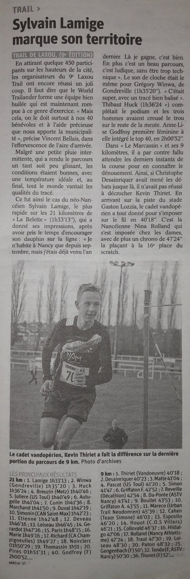 Article de Presse « Laxou Trail 2018 »
