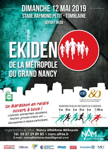 Venez participer au 3ème Ekiden de la Métropole du Grand Nancy qui se déroulera le dimanche 12 mai 2019 à Tomblaine !