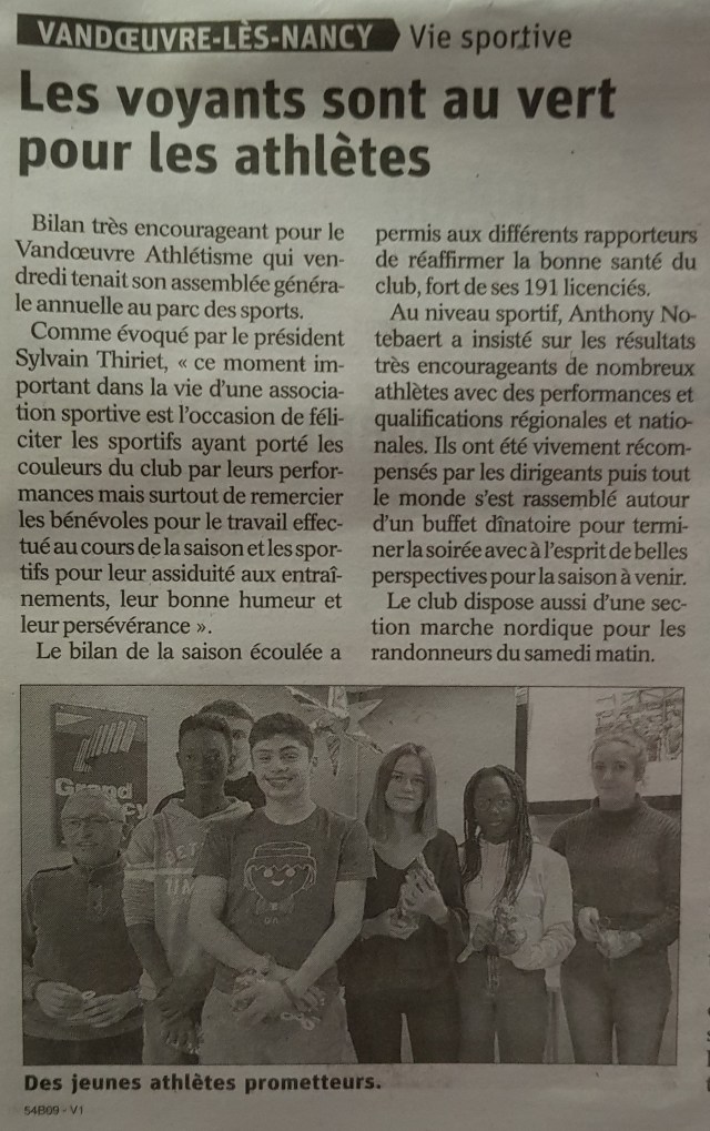 Publié le 1 février 2020 par vandoeuvreathletisme