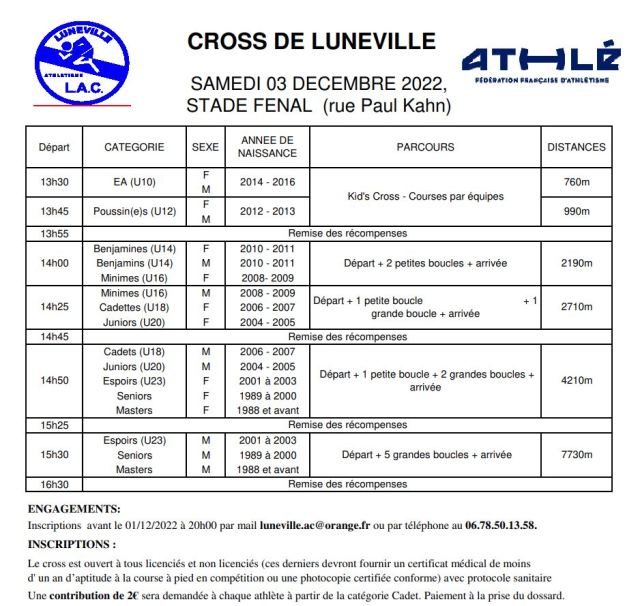 Rappel : CROSS DE LUNÉVILLE SAMEDI 3 DÉCEMBRE