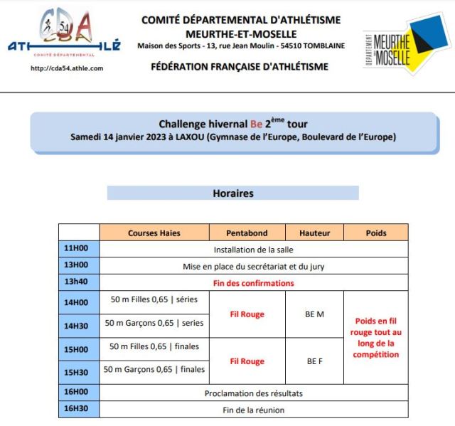 À venir. : 2ème tour du challenge hivernal BE – Samedi 14 janvier 2023 à Laxou