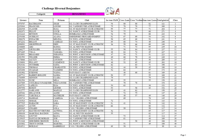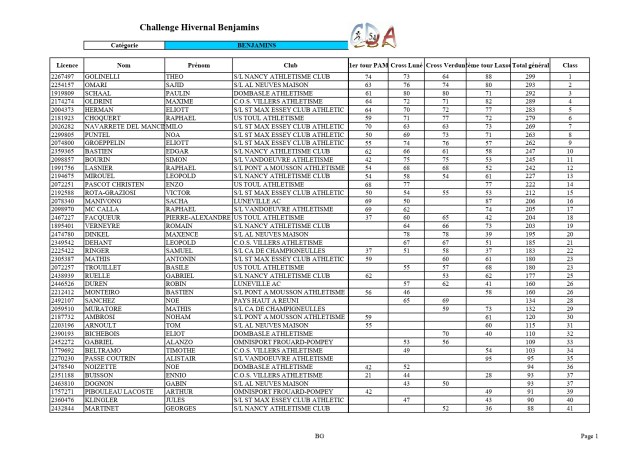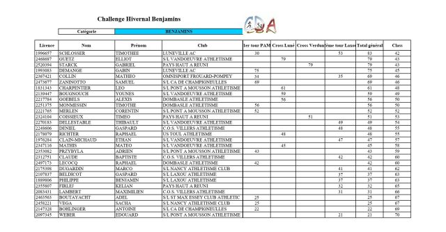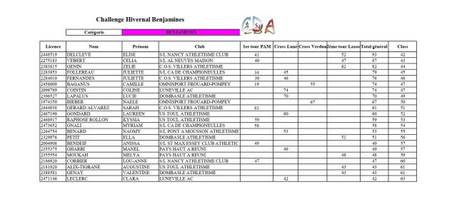 đRĂ©sultats dĂ©finitifs du Challenge Hivernal pour les Benjamines et les Benjamins