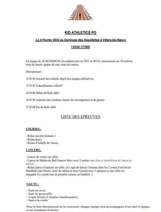 Prochainement : Kid Athlé PO à Vandoeuvre !