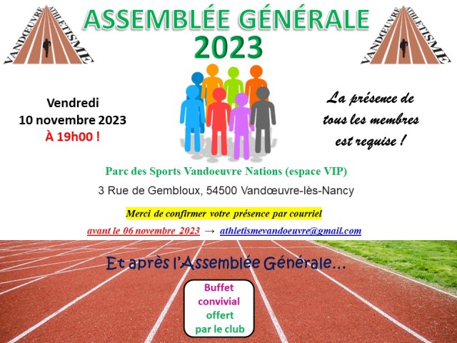 Prochainement : ASSEMBLÉE GÉNÉRALE 2023 Vandœuvre Athlétisme