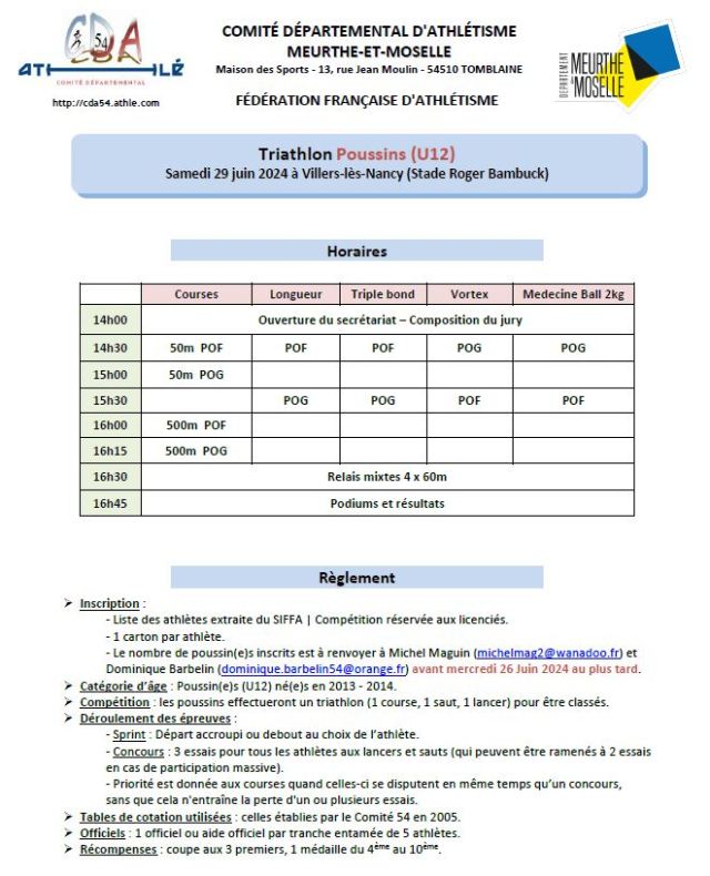 - Prochaine compétition : Sam. 15/11 1er tour Challenge hivernal U14/U16 PONT A MOUSSON