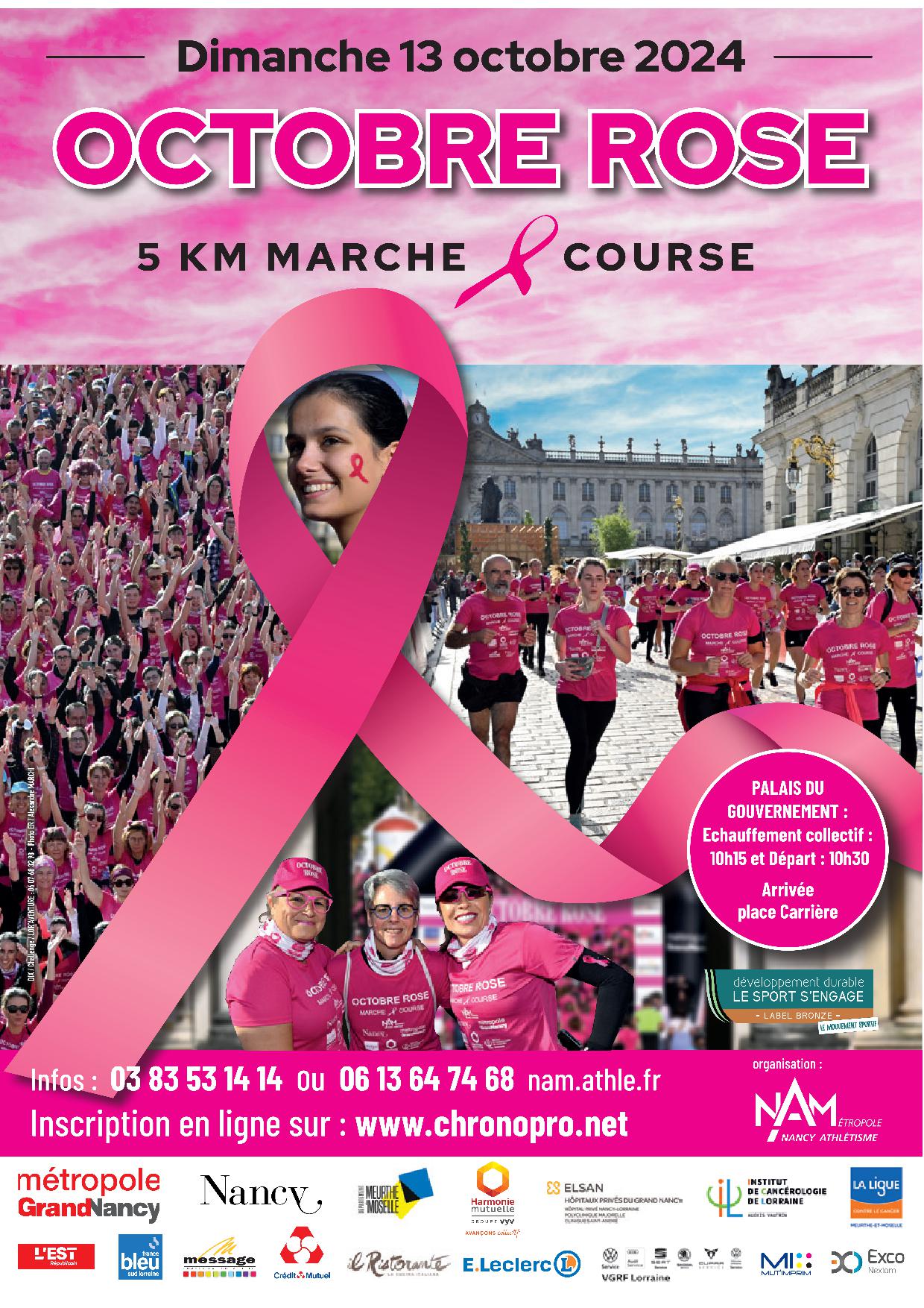 Comme chaque année, le Nancy Athlétisme Métropole, organise la Course-Marche pour Octobre Rose à NANCY.