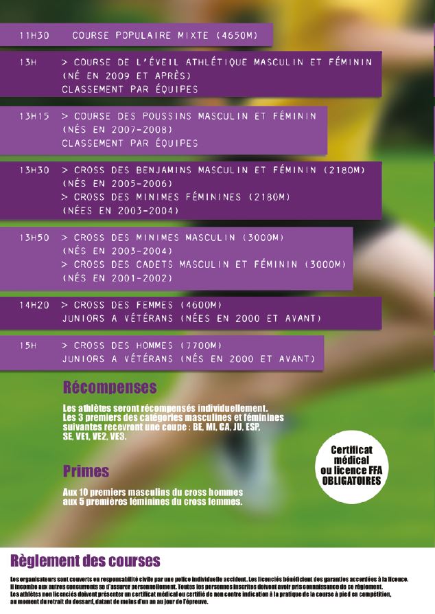 - Nous rappelons que ce cross est ouvert à tous (licenciés et non licenciés).