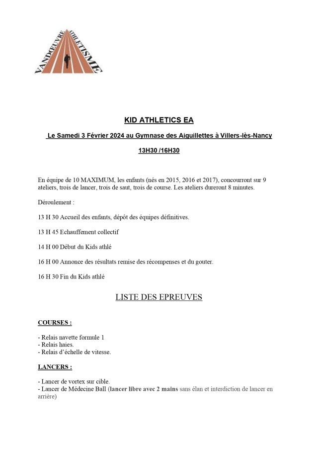 - Retour sur le Kid’s atlé du samedi 7 février 2026