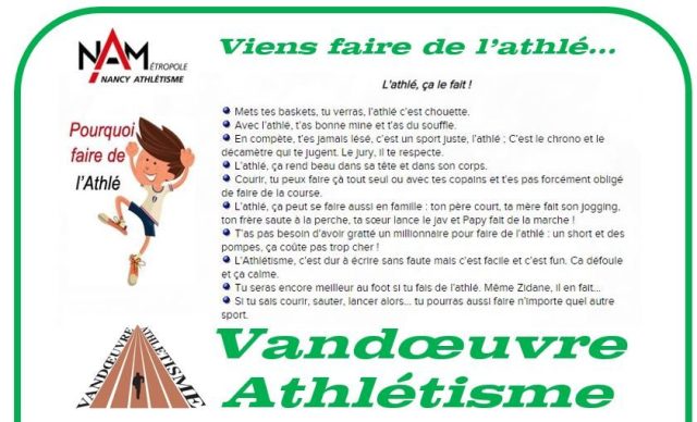 N’hésitez pas à nous contacter : athletismevandoeuvre@gmail.com